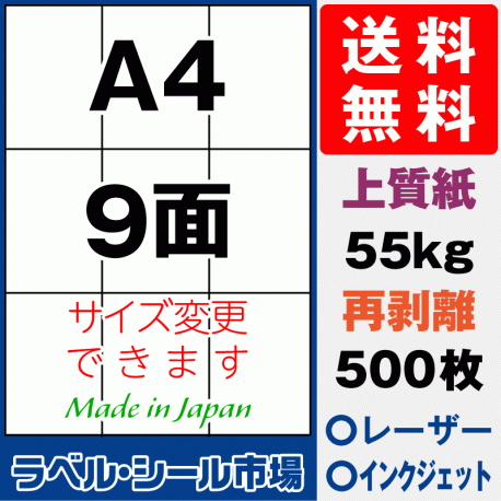 再剥離上質紙A4 9面 500枚[マルチプリンタ]