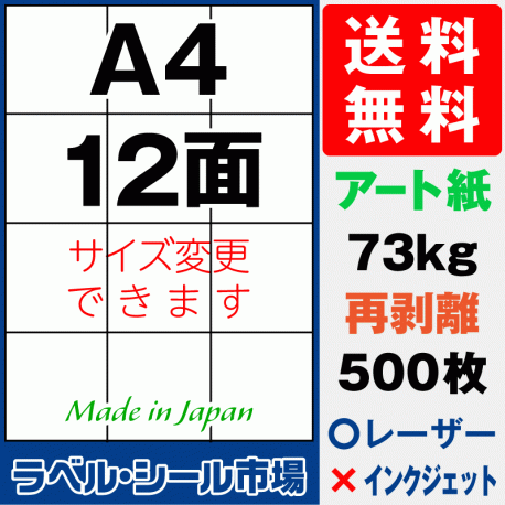 再剥離アート紙A4 12面 500枚[レーザープリンタ]