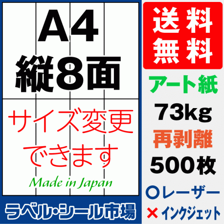 再剥離アート紙A4 縦8面 500枚[レーザープリンタ]