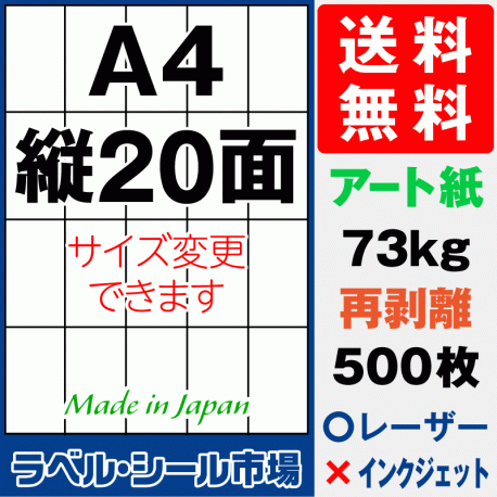 再剥離アート紙A4 縦20面 500枚[レーザープリンター]