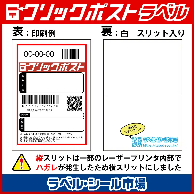 | クリックポスト宛名印刷用ラベル シール A6 再剥離 100枚 裏スリット(背割)入り A6Ars-01 | |