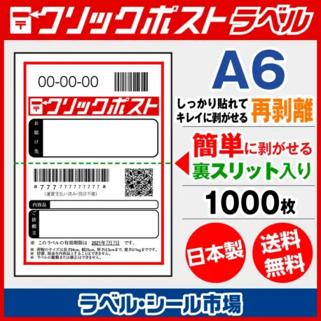 | クリックポスト宛名印刷用ラベル シール A6 再剥離 1000枚 裏スリット(背割)入り A6Ars-10 | |