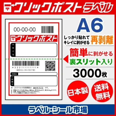 | クリックポスト宛名印刷用ラベル シール A6 再剥離 3000枚 裏スリット(背割)入り A6Ars-30 | |